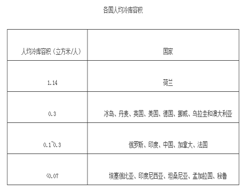 各國(guó)人均冷庫(kù)容積